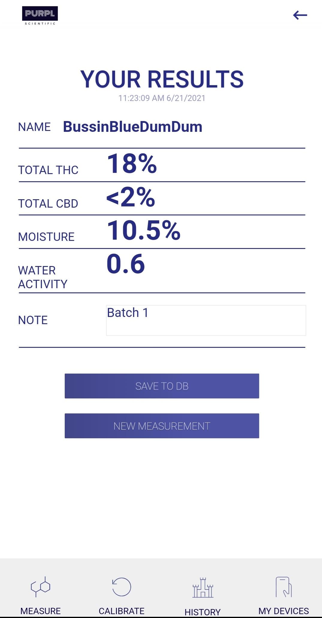 PLEASE NOTE: The measurement result, along with any entered Name or Note is only save to the portal if you press the "Save to DB" button.